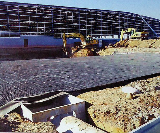 虹吸排水系統 雨水收集系統 PP蓄水模塊 土工膜 復合土工膜 防水板 塑料盲溝管 防排水板 蓄排水板 土工布 土工格柵 土工格室 溢水格柵 生態袋 土工席墊 植草格 植草盆 線性排水溝 萬能支撐器 三維植被網